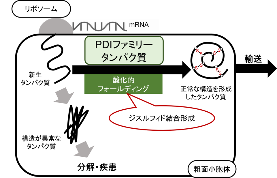 Secretory proteins, which play a crucial role in maintaining vital functions in eukaryotes, are synthesized on ribosomes bound to the rough endoplasmic reticulum (ER). Ribosomes read the genetic information encoded in mRNA and translocate nascent polypeptides into the lumen of the ER. Once properly folded into its native structure, it is transported to various sites where it performs its function. However, proteins that fail to form the correct three-dimensional structure are either degraded by the endoplasmic reticulum’s quality control mechanisms or accumulate, potentially causing neurodegenerative diseases. Therefore, proper protein folding is essential for correct transport and function, and elucidating the mechanisms of protein folding in the endoplasmic reticulum remains an important challenge.